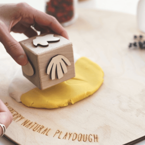 Ξύλινο ζάρι με έξι αφηρημένα σχήματα για να δημιουργήσετε αστείες φανταστικές φιγούρες, βάζα με λουλούδια ή τοπία πάνω στις πλαστελίνες.