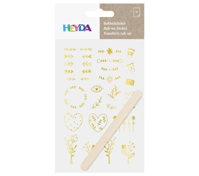 Φύλλο με χαλκομανίες σε σχήματα “love”.  Κόβετε το επιθυμό σχήμα από το φύλλο, το ακουμπάτε στο χαρτί που θέλετε να το αποτυπώσετε και το ξύνετε με το ειδικό γλωσσοπίεστρο που διαθέτει το σετ. Το σχήμα έχει αποτυπωθεί!