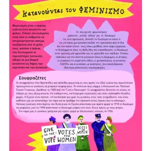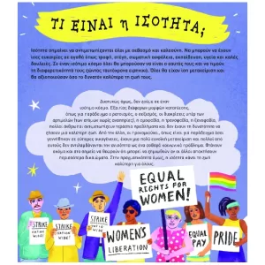 Μάθετε για τις Σουφραζέτες, το Στόουνγουολ και το Pride, τη Mάχη κατά του Απαρτχάιντ και το Kίνημα Black Lives Matter, για θέματα όπως ο ακτιβισμός υπέρ των ατόμων με αναπηρίες, το λευκό προνόμιο, την ξενοφοβία, τον πατριωτισμό, τα στερεότυπα και τις προκαταλήψεις της κοινωνίας.