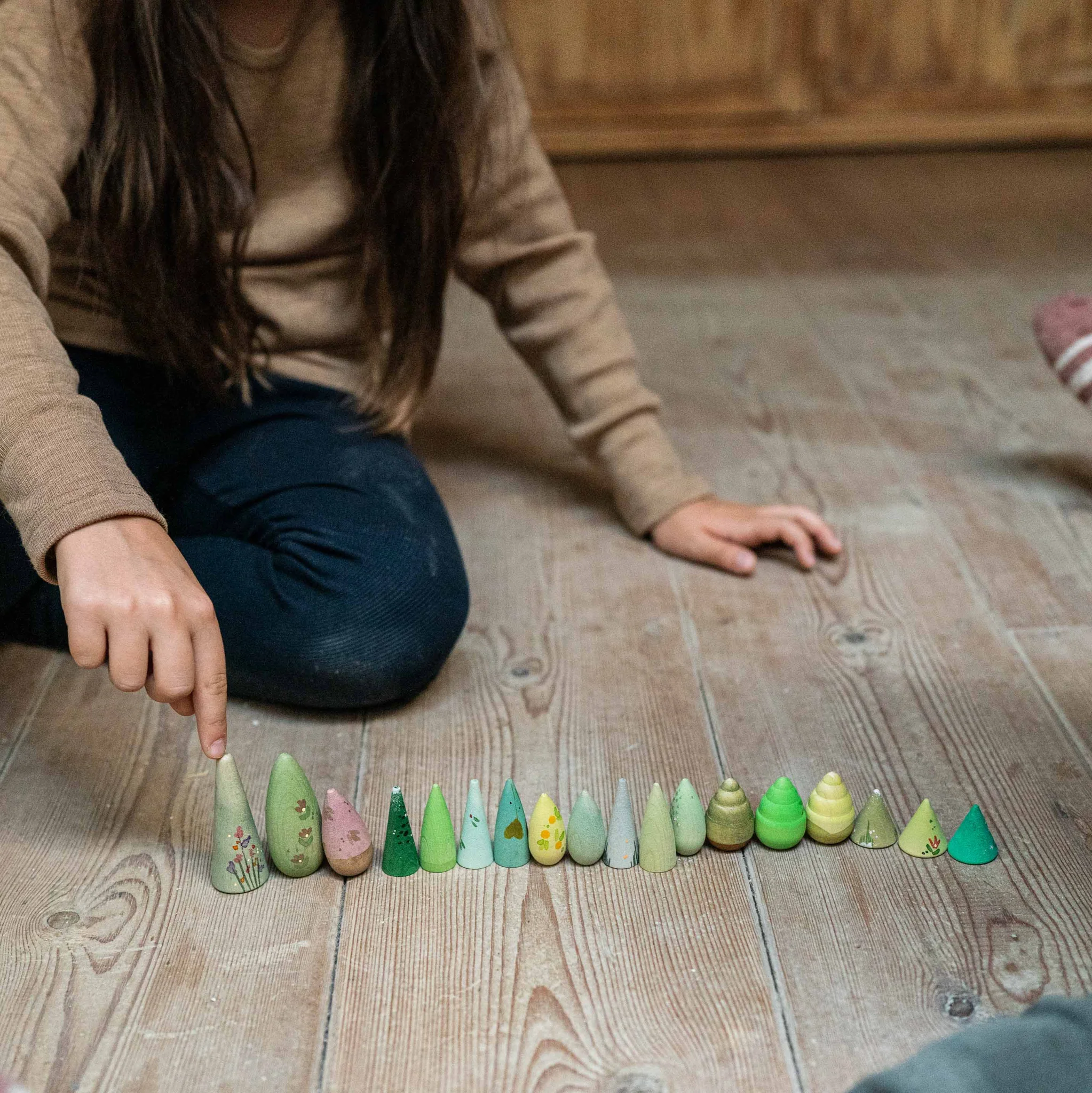 Ένα δάσος στα χέρια σας — αυτό το σετ από χειροποίητα ξύλινα δέντρα είναι φτιαγμένο για παιχνίδι χωρίς όρια, με απαλές φόρμες και γήινους χρωματισμούς που προσκαλούν τα μικρά παιδιά να χτίζουν, να τακτοποιούν και να εξερευνούν ελεύθερα. Είτε δημιουργούν το σκηνικό για μικρά ζωάκια, είτε χτίζουν ένα μονοπάτι στο δάσος, είτε απλά εξερευνούν και ταξινομούν, αυτά τα δέντρα φέρνουν τη φύση στο δωμάτιο παιχνιδιού — ενθαρρύνοντας ήσυχες στιγμές περιέργειας, πρόθεσης και σύνδεσης.