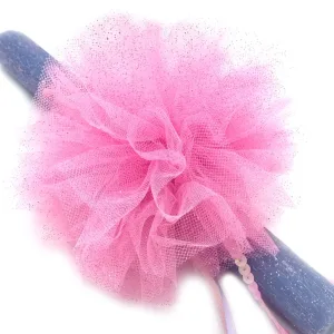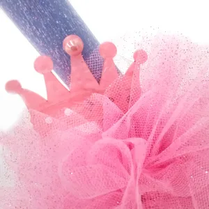 Πασχαλινή χειροποίητη λαμπάδα με λιλά στρογγυλό κερί ύψους 30cm, πον πον από τούλι με glitter και διακοσμητικό στοιχείο plexiglass.