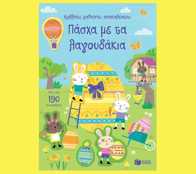 Παρέα με τα λαγουδάκια, θα κάνεις όλες τις προετοιμασίες για τη γιορτή του Πάσχα. Θα ετοιμάσεις και θα κρύψεις τα αυγά, θα διακοσμήσεις τα κουλουράκια και θα φτιάξεις ανοιξιάτικα καπέλα. Κι όλα αυτά, ενώ κολλάς πάνω από 190 αυτοκόλλητα για να ζωντανέψεις αυτές τις απίθανες σκηνές!