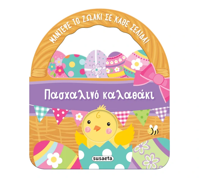 Το Κοτοπουλάκι βγαίνει να γεμίσει το καλαθάκι του με πασχαλινά αυγά. Ποιους φίλους του θα συναντήσει στη διαδρομή; Μπορείς να τους μαντέψεις όλους πριν γυρίσεις τη σελίδα; Ένα χαρούμενο πασχαλινό βιβλίο σε σχήμα καλαθιού, γεμάτο πολύχρωμα αυγουλάκια και χαρούμενα ζωάκια!