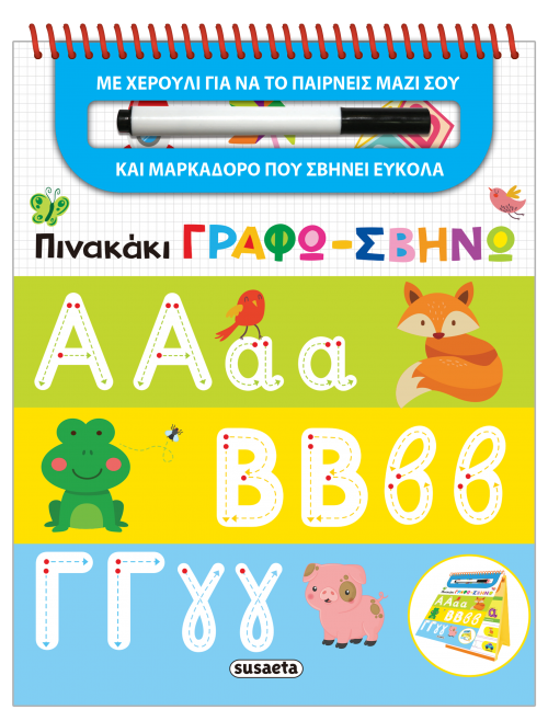 Πινακάκι για εξάσκηση της γραφής με 26 σελίδες, μαρκαδόρο και ειδική χειρολαβή για να το κουβαλάτε πάντα μαζί