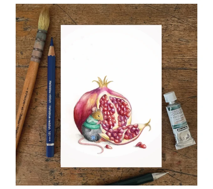 Ποντικάκι στο ρόδι, κάρτα Mhairi Hellbrandt