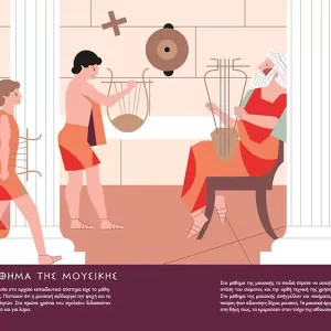 Ένα ταξίδι στον χρόνο, μέσα από το οποίο, μας δίνεται η ευκαιρία να γνωρίσουμε με σύμμαχο τη ζωντανή και μοντέρνα εικονογράφηση, την εκπαίδευση των νέων από την αρχαία Ελλάδα μέχρι και το Βυζάντιο.