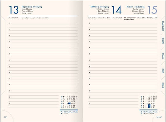 Διάσταση 14 x 20 με εσωτερικό: Μια σελίδα ανα μια ήμερα.