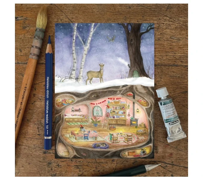 Οι καρτ ποστάλ είναι τυπωμένες από τις αυθεντικές, νοσταλγικές και ευφάνταστες χειρόγραφες εικονογραφήσεις της Mhairi Hellbrandt.